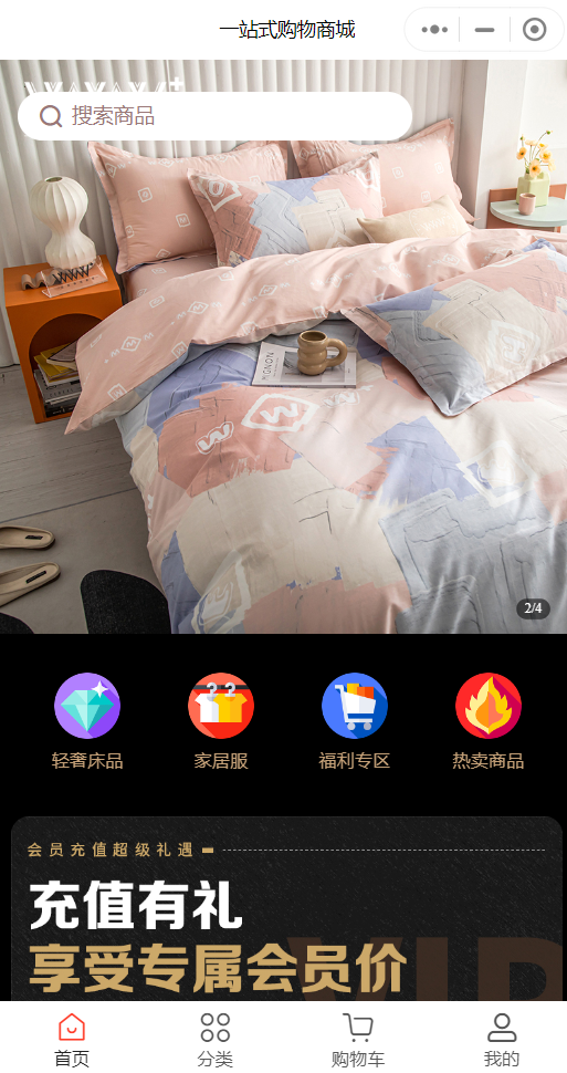 床上用品商城小程序會有產(chǎn)品分類功能,商城小程序平臺會將商城產(chǎn)品分為套件、核芯、床墊等多個類別,用戶可以根據(jù)實際的需求選擇加購。
