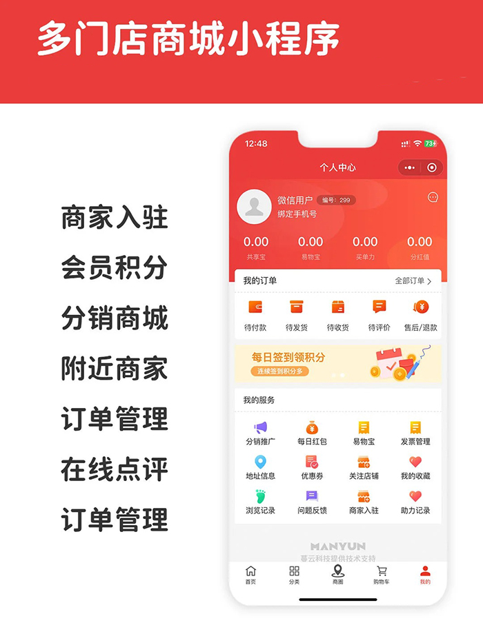 多門店商城小程序可以為商戶搭建自己的商城系統(tǒng),方便商家對店鋪進行管理,商家可以直接在小程序中管理售賣訂單,統(tǒng)計資金流動等內(nèi)容。